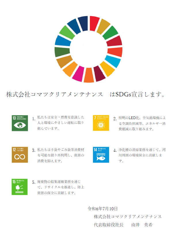 小松市のホームページ内の「SDGs宣言しませんか?」のページにてSDGs宣言 いたしました。 社員一同、目標達成に向けてがんばります。